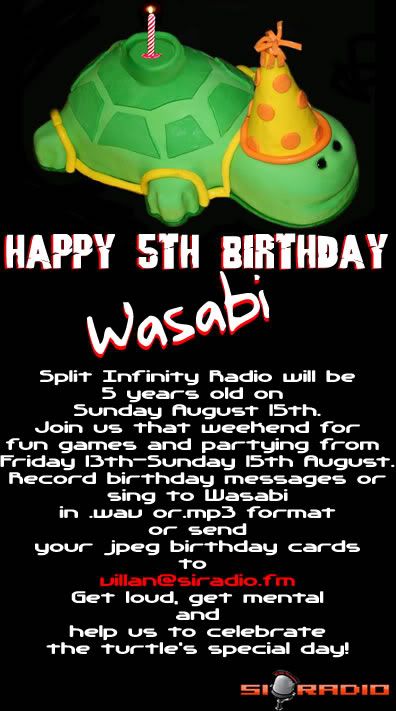 Yes, we have been here for 5 years invading your ears with our interwebs based craziness, and now it's time to party! August 13-th 15th will be one big party of birthady joy for our favourite turtle and you are all invited!