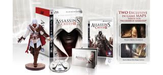 It looks like the Assassins Creed 2 official twitter has thrown up an image of their collector's Edition. It will include an art book, two additional game maps (multiplayer?), and a pretty bad ass 8.5" figure of the main character Ezio.