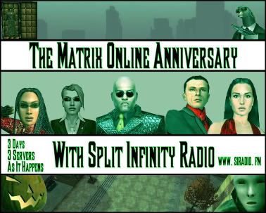Are you ready to celebrate a new combat system, over a year in the Matrix, and some killer Live events? Then look no further then your number one station for The Matrix Online.... Split Infinity Radio.